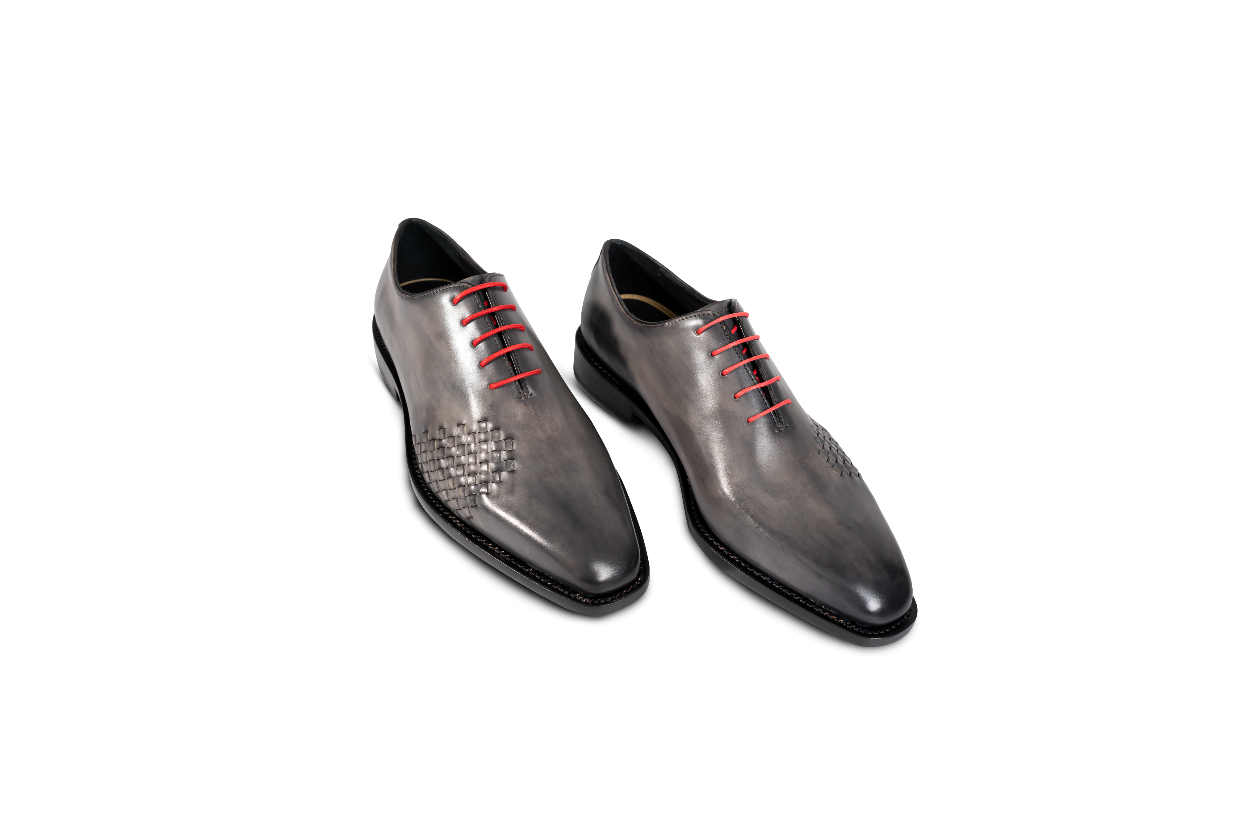Discover timeless sophistication with the Intreccio Woven Wholecut, where traditional shoemaking meets artistic flair. These dress shoes are distinguished by intricate handwoven leather detailing across the vamp and quarters, offering a textured, luxurious look that sets them apart from Wholecut.